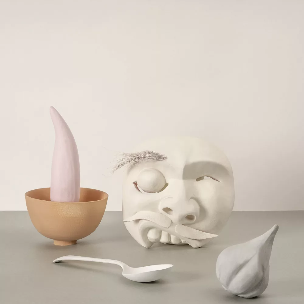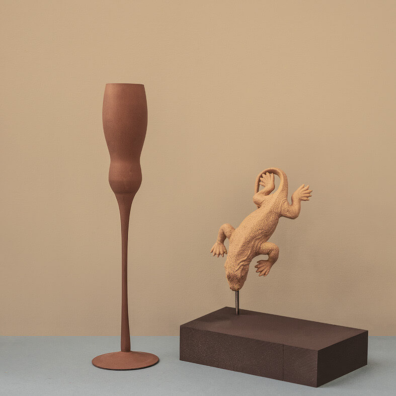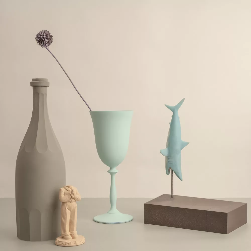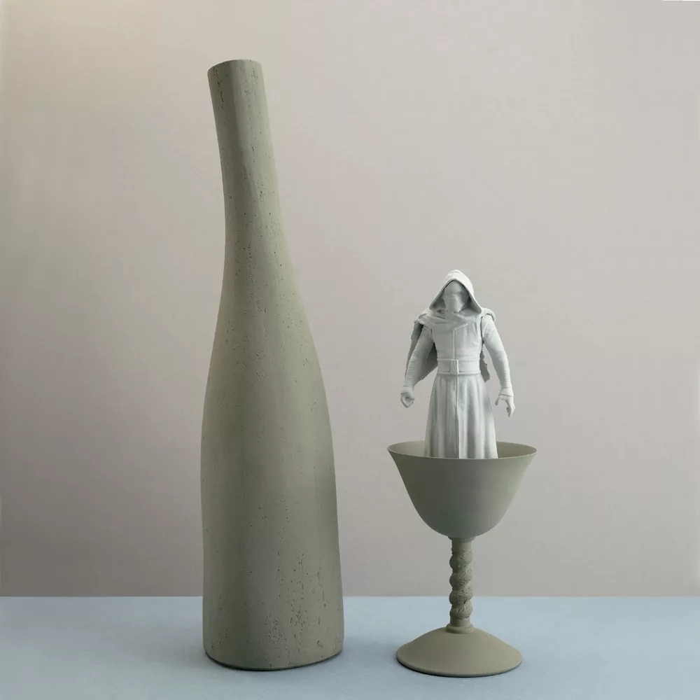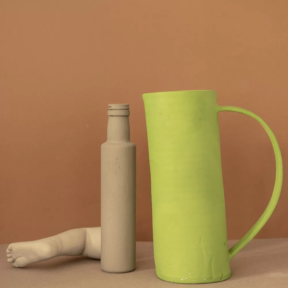 Ici, le travail de la couleur sur ces objets et de la lumière présente permet de les déplacer de leur contexte afin de permettre l’ouverture d’espaces nouveaux. Ces objets, peints puis photographiés, deviennent des jeux d’exercice visuel : une discipline du regard dans un contexte contraint.