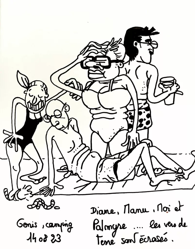 À 6 mains se dessinent de drôles de récits éphémères: Le Père Noël, si on le souhaite, peut enfin mourir, le papa-croque-mitaine est terrassé, on règles ses comptes comme on le souhaite, à grande ou petite échelle, pour son propre plaisir en improvisant son premier scénario à 10 ans.