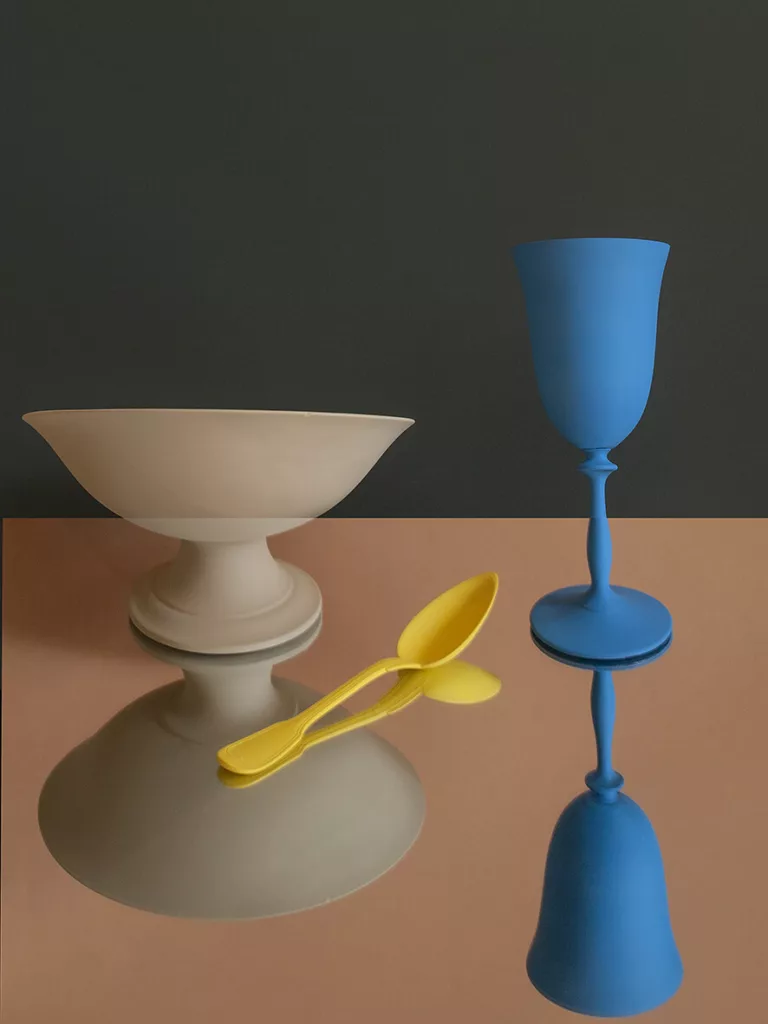 Ici, le travail de la couleur sur ces objets et de la lumière présente permet de les déplacer de leur contexte afin de permettre l’ouverture d’espaces nouveaux. Ces objets, peints puis photographiés, deviennent des jeux d’exercice visuel : une discipline du regard dans un contexte contraint.